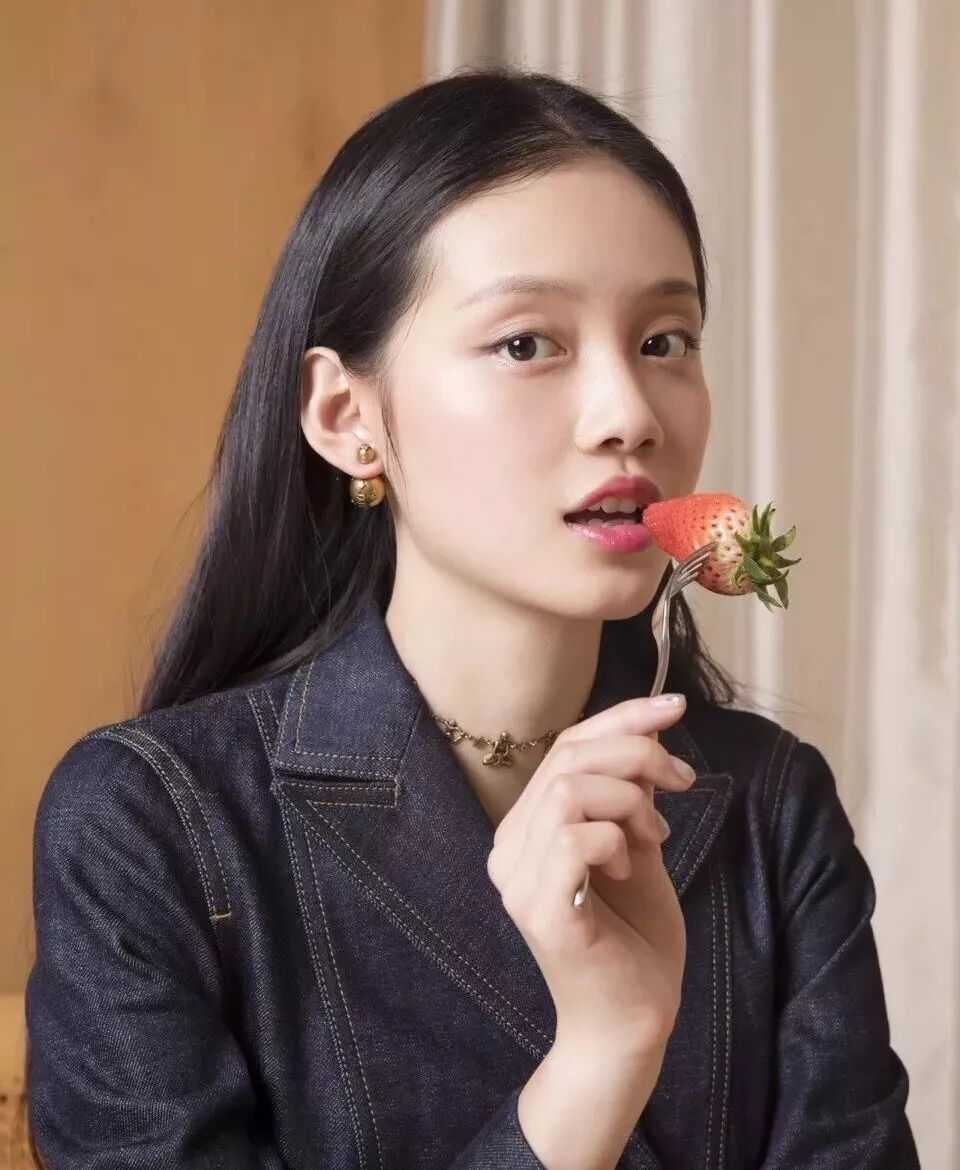 天生的好皮肤+精致的五官,确实加分不少。