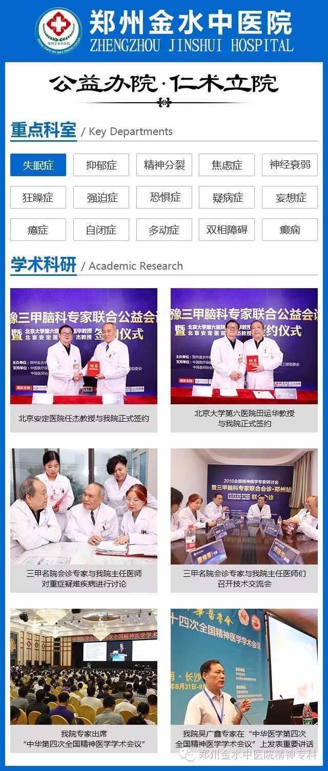 欢迎关注郑州金水官方微信,我们免费为您提供失眠、抑郁、焦虑、精神分裂等疾病的预防方法,医疗常识和新闻资讯!