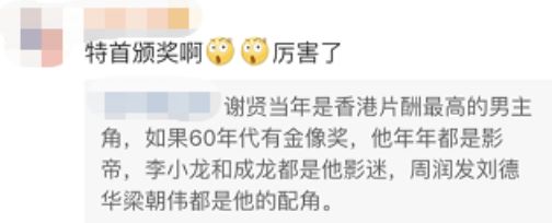 确实,比起第36届金像奖终身成就奖得主成龙,很多90后并不了解谢贤在电影上的成就。