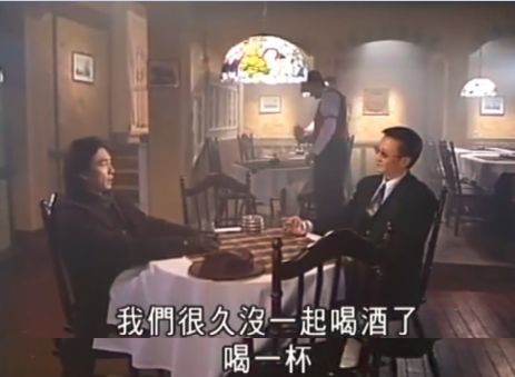 《黑白森林》里,他演一个诡计多端的黑社会老大,把毒下到酒里,为了麻痹对手自己也喝下毒酒,又在分开之后赶紧去洗胃。