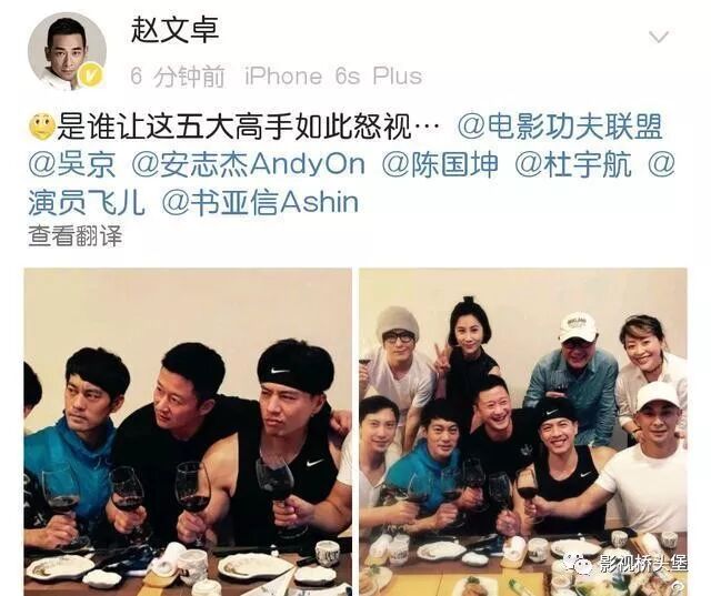 最近赵文卓晒出一组照片,本来是因为《战狼2》大火的导演吴京特别前来探班赵文卓的新影戏,而赵文卓也发文称:是谁让五大妙手云云瞪眼,此中另有陈国坤。