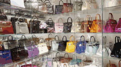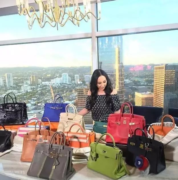 爱马仕包包也摆满了柜子,收藏数量比贝嫂维多利亚还要多。
