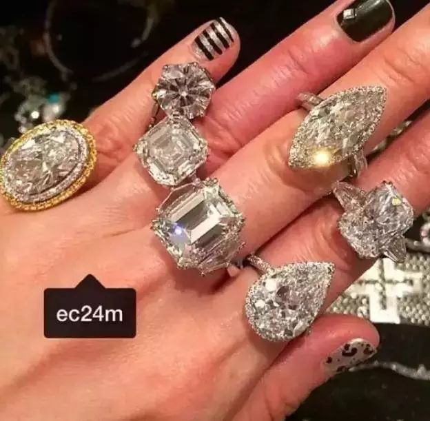 当然,钻石也是她的最爱,一只手就戴出了好几套房子的价格。