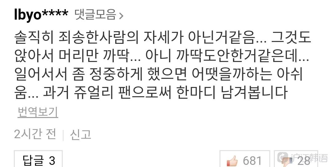 7. 说实话,她一点也没有道歉者应有的姿态啊…只是坐着点点头罢了…不对,好像连头也没有低下…应该站起来郑重地道歉吧。来自Jewelry曾经的粉丝。