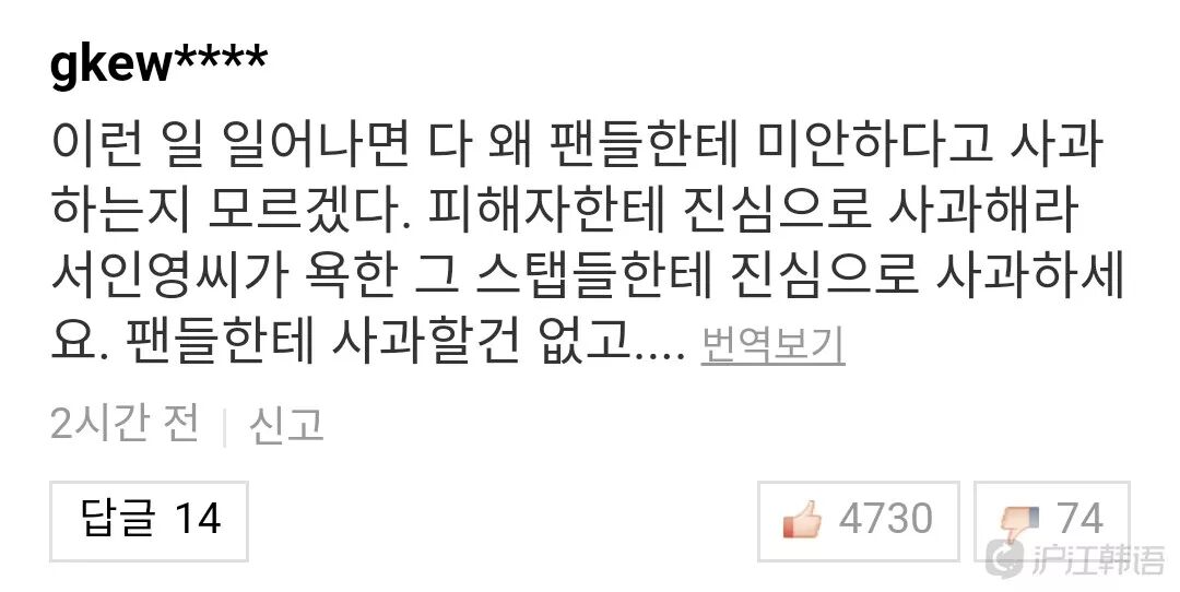 4.我不知道为什么出了这种事情要对粉丝们道歉。请徐仁英对当事人道歉吧,对粉丝道歉没用的。