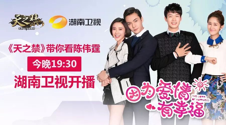 诸位《天之禁》的玩家朋友们,给你们带来一个好消息,与《天之禁》深度合作的电视剧《因为爱情有幸福》今晚19:30即将在湖南卫视金鹰独播剧场正式开播。此剧由陈伟霆、唐艺昕、魏大勋等当红明星主演,轻松欢乐的爱情小品一定能够感染到你。