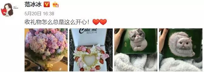 蔡少芬晒吻照,呼吁爱要大声喊出来;范冰冰晒花晒蛋糕晒猫咪包,又被催婚了;马丽晒和老公有趣自拍照,夫妻相配一脸......