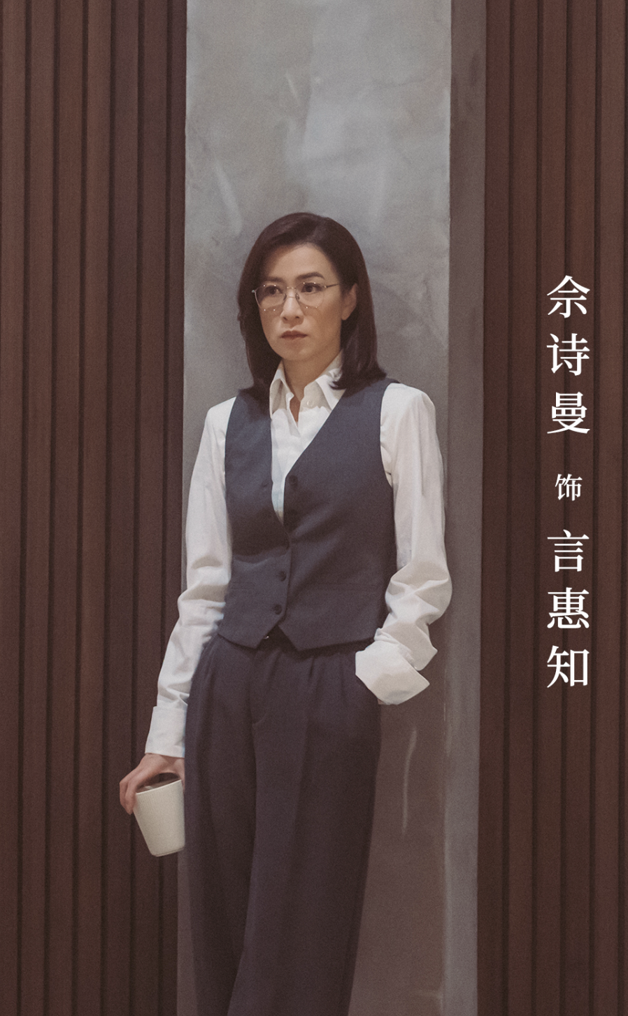 在佘诗曼极其紧张的行程间隙,我们采访到了她。她刚刚结束一场活动,但未见疲态。一身剪裁利落的格纹西装,肩线挺括,衬托出她独有的干练气质。标志性的短发比《新闻女王》时期长了些,仍然清爽果决。最大的变化是她鼻梁上那副专门为新剧设计的眼镜——并非单纯的装饰,而是角色的一部分,镜片后的眼神专注、锐利,又带着法官特有的审慎与距离感。这一刻,她是文慧心与言惠知的奇妙叠影,一个我们熟悉又充满未知的佘诗曼。