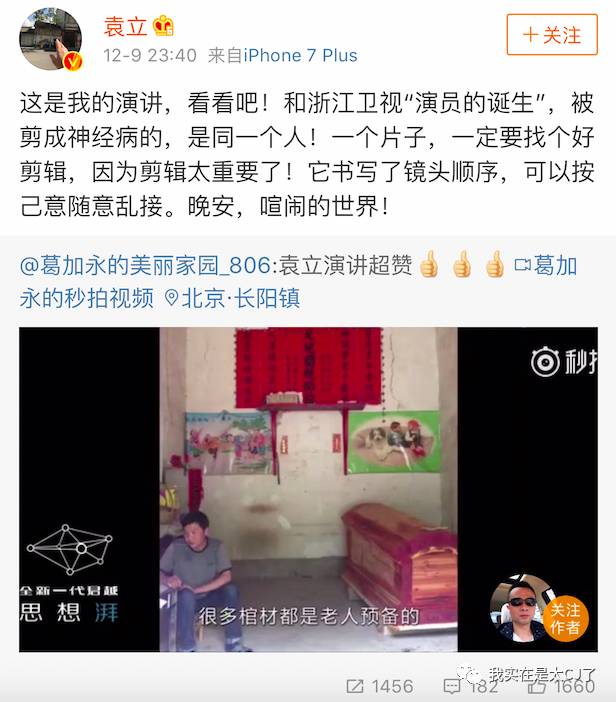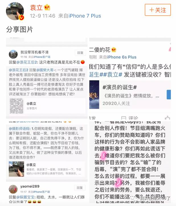 不过我去看了他的微博,真的是从《演员的诞生》这个节目一开始就写头条长文,