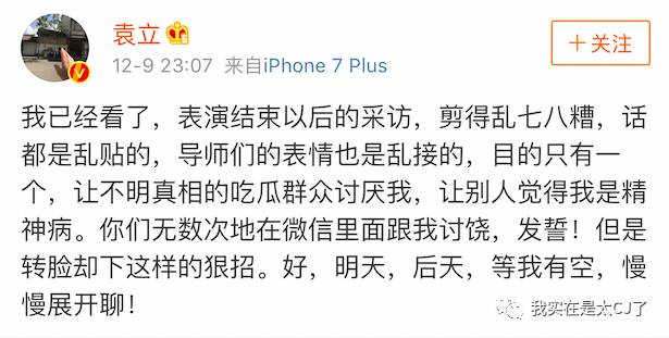 这样的长文章,算不得什么通稿,因为既没有和其他人统一口径,又没有类似文章被大量刊发转载,连行文态度都前后不一,只能说是为了蹭热度而简单炮制的快手内容,却让袁立发了火。