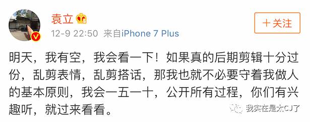但两天后,也就是节目播出前一天,8号下午,袁立的态度变了。