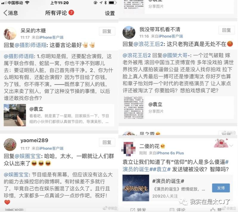 此外袁立还分享了一张截图,说这些评论者都是水军,讲话恶毒,自己并没有配合别人作假,反倒是节目组满嘴谎话,还差点拖欠自己劳务费。她还表示要么自己把劳务费退了,不播这一集,要么自己就把这些钱都捐出去。