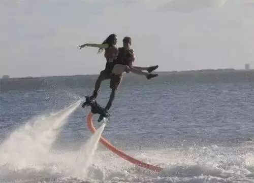 这里的海面平静清澈,林志玲在坎昆的白色沙滩体验水上飞板