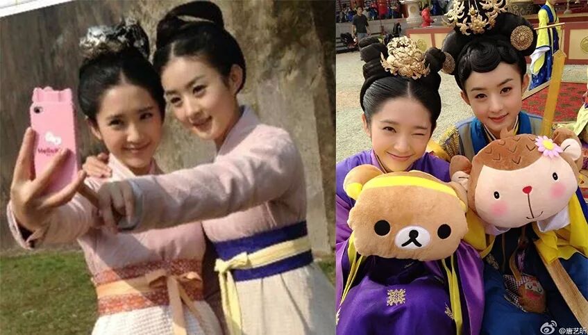 ▲两人有过不少合作,友谊也是从《陆贞传奇》开始的,在片场她们不仅会各种自拍,还各种get同款,合照中圆圆的小鹅蛋脸和弯弯的笑眼,加上相同的服装,还真的有点像双生姐妹花。