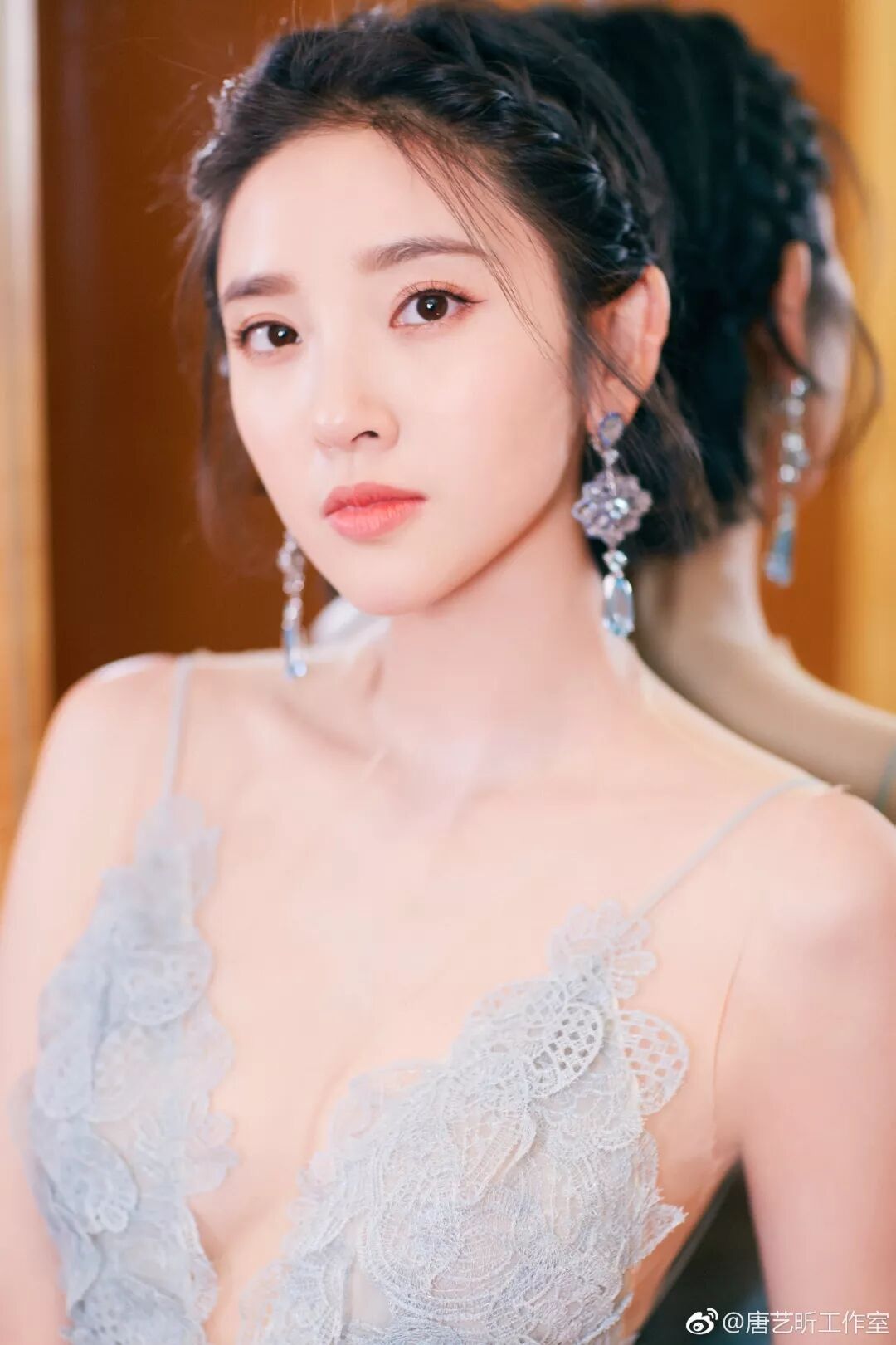 ▲透明感的状透出她皮肤的白皙和通透度,隆重华丽的轻羽感礼服衬出她漂亮的肩颈线条,短发+侧编发打造出仙女的气质,硬照颜值真的十分能打!
