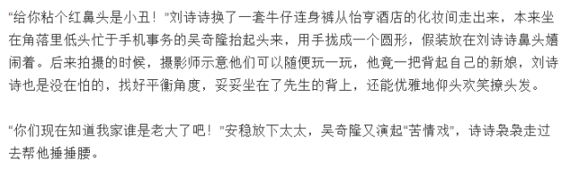 拍完上面这张照片,刘诗诗第一句就问吴奇隆,“你有没有事”。