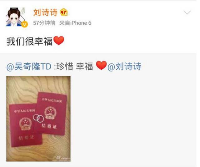 吴奇隆的公司法人变成了刘诗诗,刘诗诗不只是老婆,还是老板。虽然还没有看到豪华婚礼和大型钻戒,但这是全部身家都压上的节奏啊。