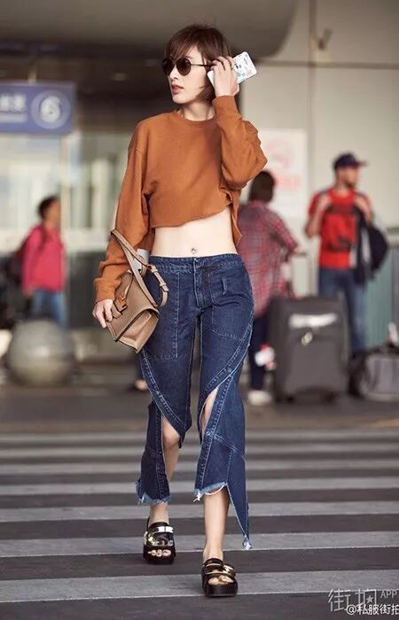 ▲张俪给人感觉非常高挑,但其实她的身高不到一米七,主要就是她的腰腿比例很好。脐钉可以说是非常吸睛了!
