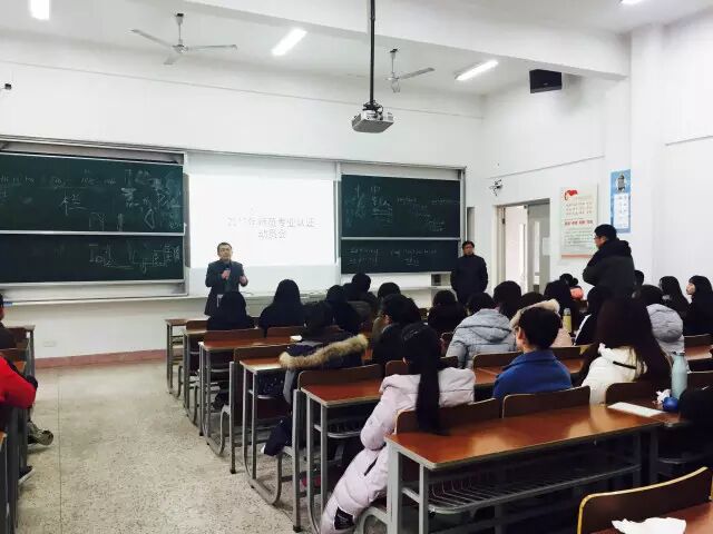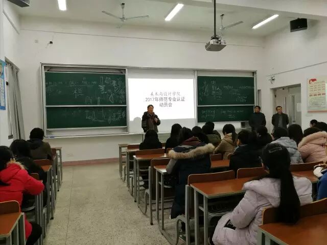 为切实推进教师教育综合改革,加强教师教育体系建设,积极响应教育部号召,2月22号下午3:30,美院504教室举办了2017年师范专业认证动员会,此次动员大会由美术与设计学院黄海书记、刘军院长、戴勇副院长主持,我院13级、14级、15级、16级师范班全体同学参加了此次大会,现场气氛活跃。