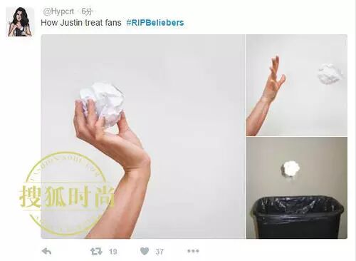 网友发文形容比伯对待粉丝就像扔垃圾。