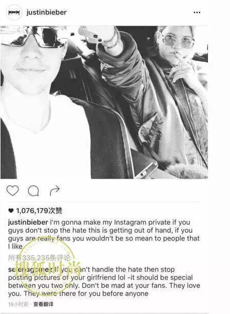护爱心切的比宝怒发冲冠为红颜,随即发布一条ins,对粉丝说:“如果你们继续对我女友如此苛刻,并且持续表达憎恨,我就会把页面变成私人的。”这条回复惹怒了他的粉丝们,并且文中称呼粉丝措辞为“fans”而不是粉丝们引以为豪的“believers”,粉丝伤心至极,狂刷留言。