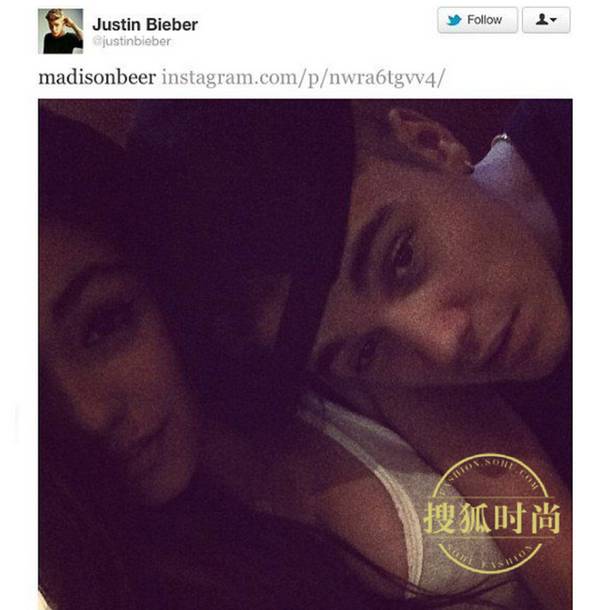 小贾斯汀近日在社群网站大方上传他亲密靠着麦迪森的合照,照片中,女方穿着白色无袖背心侧躺,而他直接靠在麦迪森身上,脸颊简直快贴上女方的胸部。