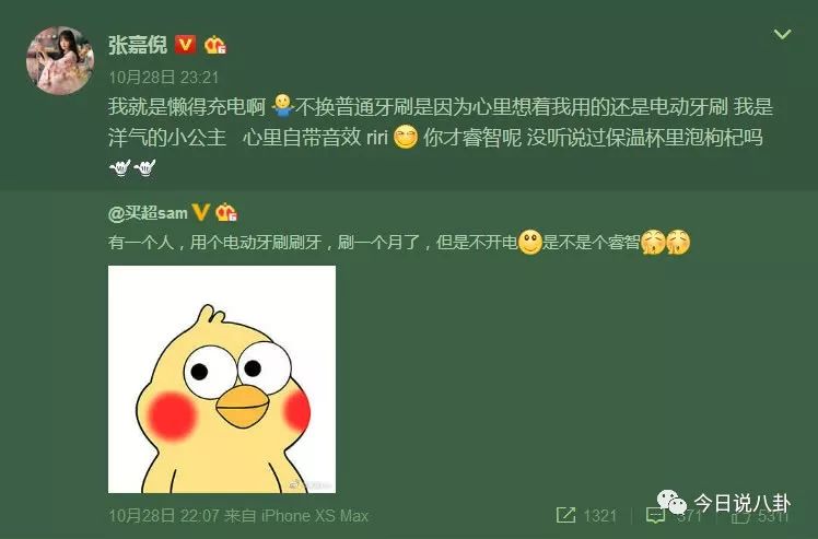 近日,张嘉倪和买超深夜发微博,互相吐槽对方生活方式,引起了网友们的围观。张嘉倪自称是洋气的小公主,却吐槽买超是一个小老头,张嘉倪和买超互怼的境界真是高啊!不得不佩服,张嘉倪和买超两人这种骂对方不带脏字的和谐互怼。
