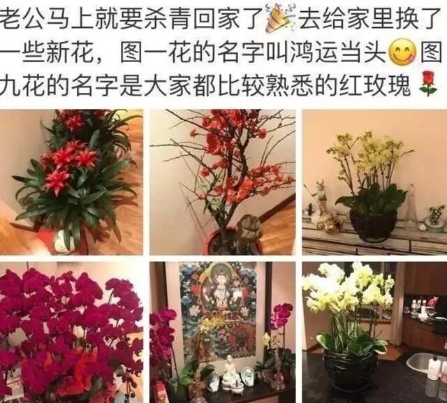 近些年,霍思燕鲜有出演电视剧和电影,主要任务都是在家相夫教子,当起贤妻良母。有关注霍思燕的朋友都应该知道霍思燕时常会在微博上晒出自己生活日常,并且生活过的非常滋润。微博上,霍思燕会经常发一些花花草草还有生活日常的照片,我们来看看霍思燕在2018年1月17日发的这条微博,内容说到杜江拍戏马上杀青了,在家里换了些新花迎接老公的回家。