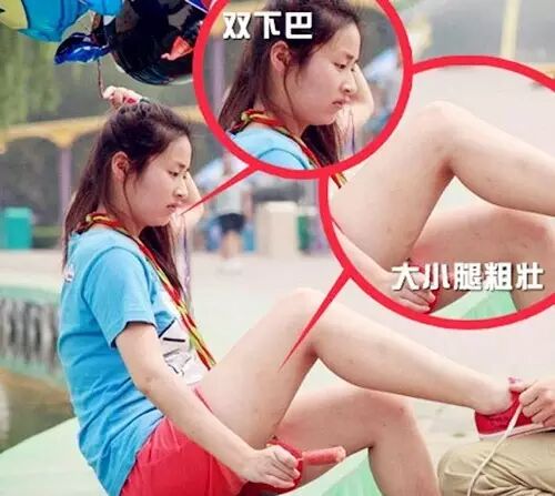 这么粗的腿和明显的双下巴还是让她的外形大打折扣