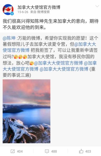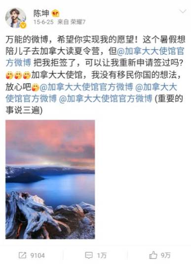 你们知道陈坤为什么会被加拿大使馆拒签吗?