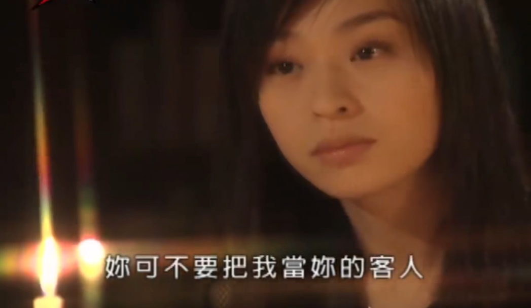 再出场时却穿着一身黑色透视装、做了援交女郎,陪客人时露出青涩的妩媚笑容。