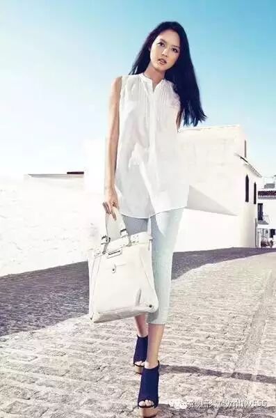 无袖的长款白衬衫,隐约透出清凉,配上七分紧身裤,就是夏天的节奏嘛~
