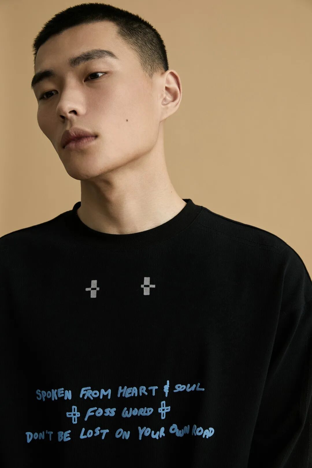 作为引领着数代青年文化的精神领袖,同样自身也被永远置于舆论漩涡中,Kanye West背负着赞颂与骂名、推崇与争议、追随与诋毁,如果天才与疯子是一线之隔,Kanye,就是正好踩在线上的人。 无论你爱他或恨他,嗤之以鼻或者梦寐以求,你都难以无视他身上那种矛盾糅杂后催生出的别样魅力,Kanye究竟凭什么成为一种文化象征?凭什么二十年后的今天他依旧站在顶点?或者说,Kanye如何成为Kanye? 跟随着拍摄跨度二十余载的纪录片《Jeen-Yuhs:A Kanye Trilogy》第一部分,回到这个故事的起点,凭借为Jay-Z领衔的Roc-A-Fella制作伴奏而小有名气,但他有更明确的目标,他要站在台前,他要一纸唱片合约,他要通过更广阔的平台去影响更多人。 所以,一脸稚嫩的Kanye站在了Roc-A-Fella公司高层的办公室门前,口袋里装着录好的demo与信心,期待着伯乐的到来,自己便仰仗才华扬名立万;事实是,在Kanye卖力演唱的时候,市场营销、总经理助理们依旧旁若无人接听着电话,留他一人独自尴尬。 彼时的Kanye一如任何一个雄心壮志的年轻人,故事俗套起来无非是怀才不遇、接连碰壁、失魂落魄、泯然众人,这个剧情却没有发生在Kanye身上,他仿佛坚信自己一定会有所作为。 这种不会被打倒的自信,就是一座摩天大厦基石一般的存在,当他在后来的歌词里写着“I miss the old kanye”时,他或许也在想念那个人——那个没有钱打计程车、又不愿错过任何一个机会就跑了20个街区毛遂自荐的新人,那个分明籍籍无名、面对知名歌手索要一个伴奏时却出奇愤怒的愣头青,那个明明已经活在别人的“美国梦”里、但依旧朝着更高目标奋进的野心家。 我们都想念Old Kanye,因为那是一剂强心剂,那是胜过千言万语的鸡汤与成功学,光照在他身上,折射出我们自己,每个将“坚持”和“无畏”当成座右铭的年轻人。 与之相比,New Kanye就更贴近现实,天才如他也一样遭受了来势汹涌的变故,突如其来的车祸让他重新反省思考,转为危机做出一炮而红的专辑; 婚姻后期躁郁症发作的言论更将他推向风口浪尖,他却看上去依旧无所谓。得不到世俗意义上的认同感,而为了继续扩大影响力,他转投Sunday Service这样宗教形式的演出选择。 Kanye依旧在挣扎,无论你认为他是天才抑或是疯子,都无可否认:Kanye的迷茫也成为了一代青年们最大的共情。他也曾懵懂青涩,慌张期待着别人的评价与眼色,也在自我与自我的斗争泥潭里越陷越深,成为别人眼里的笑柄;但他真诚,才华横溢,坚信自己终将改变世界。我们看到他,依旧仿佛在看我们自己。 对自己无与伦比的自信,以及情绪上难以和解的困顿,两者催化出了今天的Kanye West,过去二十年间最具影响力的Icon之一,在《Jeen-Yuhs:A Kanye Trilogy》落幕时的吟唱中,一切都从模糊变得清晰—— Kanye的母亲Donda West对他说,“The giant looks in the mirror and sees nothing. ”那种对自身才华坚定不移的信念,那种对高处的渴望与野心,那种跳脱出世俗意义以外的眼光和格局,让他成为一个巨人;但当巨人凝视镜子,他什么都看不到,这种反思形式的重塑,让他变得更伟大。 巨人本身,与一面镜子,打造出这个独一无二的时代里的“神”。正是这种融合,萌生了后浪般的青年文化,也使得青年文化始终是潮流、时尚、音乐、艺术,乃至任何领域的中坚力量,而在国内,最早传播多品牌集合文化的潮流先行者FOSS,也对这个时代最珍贵的青年文化做出了自己的高度提炼: 从对远方未知的无所畏惧,始终怀揣自信着坚持,不曾停下探索的脚步,加上时时刻刻自我反思式的重塑,达成自我的崭新创造,以此获取真正意义的自由。FOSS远不止停留在单品、穿搭,甚至潮流本身,FOSS更倾向于对年轻一代的思想输出,赋予其能力去独立思考,指引态度,将文化、哲学与精神结合在一起,进而改变世界,如同Old Kanye与New Kanye兼得一样。 也就像Kanye用音乐以及时尚理念来传递自我思想给大众一样,FOSS选择了用服装作为媒介,特别邀请了从事包括Balenciaga、Nike等各大品牌、杂志、艺术书册排版与平面图像设计的韩裔设计师Boah Kim,操刀了FOSS的全新Logo、十字Icon与色调设计。 这个独一无二的品牌logo象征着FOSS青睐推崇的青年文化中每一份子,每个拥有独立精神、乐于分享新的文化和艺术设计的社群群体们,碰撞磨合,产生崭新的想法与观念,成为引领这个时代的中坚力量。 在这份拥有温度的图案基础上,FOSS SS22 EMBRACE MYSELF以T恤、卫衣、棒球夹克等产品为载体,推出了核心理念:“拥抱自我”。不迷失自己、敢于从已知的自我探索未知的自己,同时更要直面不完美的自己,宽松修身的版型下,寓意着用积极乐观的态度去探知世界,温暖、激励自己和万物。 不仅如此,在每件成衣的内侧,FOSS留下了不同的暖心话语来鼓舞青年群体们:DON'T BE LOST ON YOUR OWN ROAD. 不要迷失自己。 THE AMAZING WORD.神奇的世界。 MY FLAWS ARE MY RIGHTS.直面自己的缺点。 在这些简练浓缩的寄语中,不难看出FOSS对于青年文化的解读:这仍旧是“最好的时代”,思想与思想碰撞,观念和观念融合,在机遇与挫折中前行,相信自己将会成功,铭记人格上的独一无二,同时,直视一面镜子,坦然接受自己的缺点。 巨人凝视镜子的时候,他什么都看不到。 和FOSS一起,获取独立精神,怀揣着看似偏执的信念,从迷茫与挣扎中与自我和解,向着目标坚定不移地奔跑,就像2002年的Kanye West一样。用更崭新的思想和理念,成为自己的Kanye West。 全新FOSS 