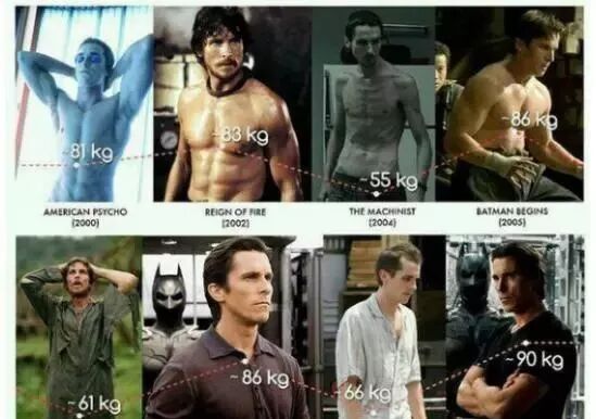 为了拍戏,让你增肥就要增肥,让你减肥就要减肥。这样对身体伤害是很大的。比如演过蝙蝠侠的贝尔: