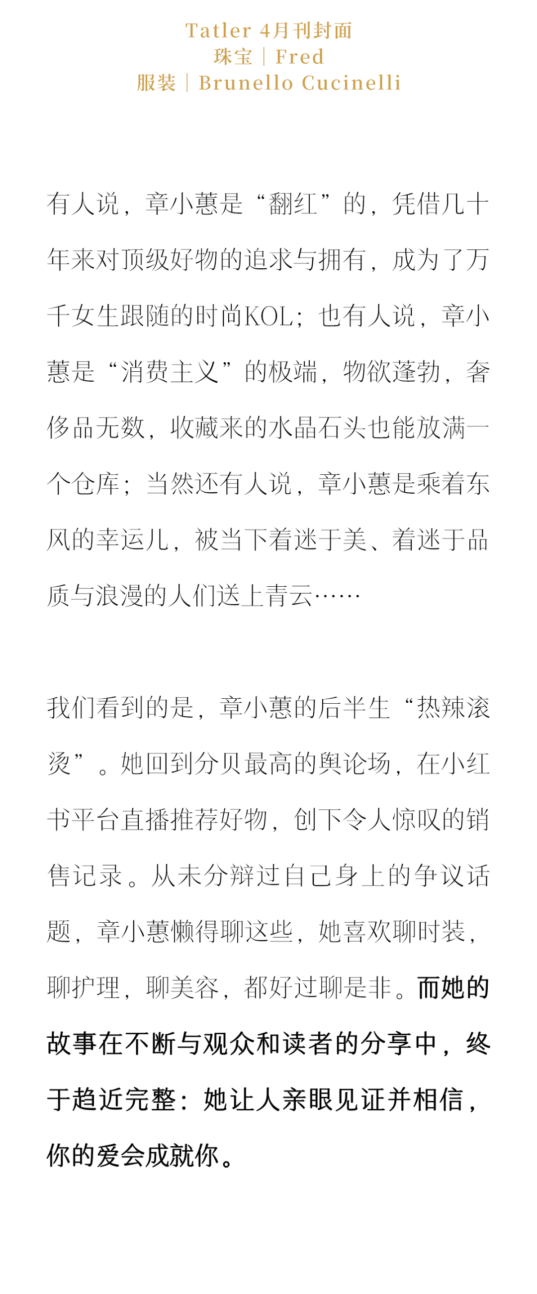 她会沿着故事的生长脉络串联出一个浪漫的逻辑,所有产品也好,风尚规则也好,都有一个专属于章小蕙的版本。
