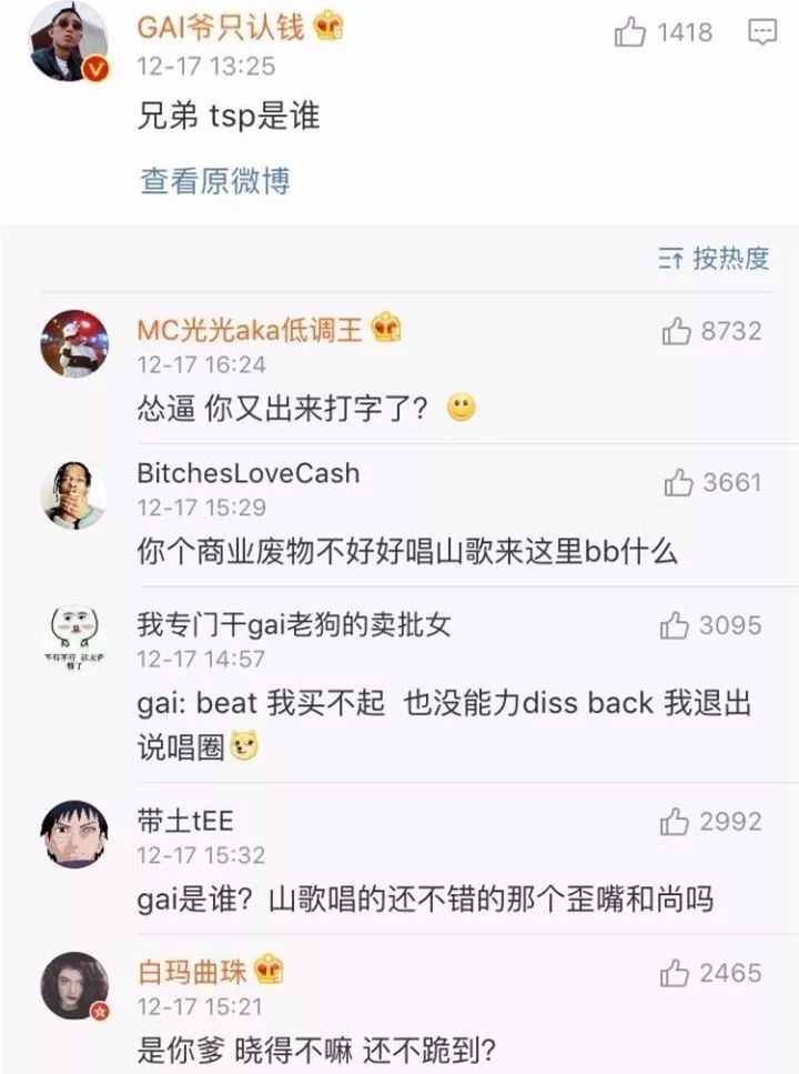 12月17日,龙泽宇《ROL!(TSP Diss)》发布后,GAI问TSP是谁,被光光及网友围攻。