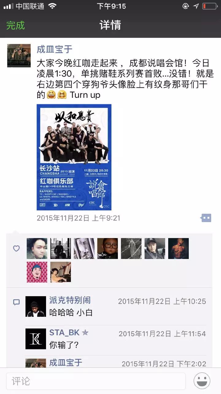 2015年11月22日说唱会馆巡演到长沙,C-BLOCK大傻跟他们打了场球。