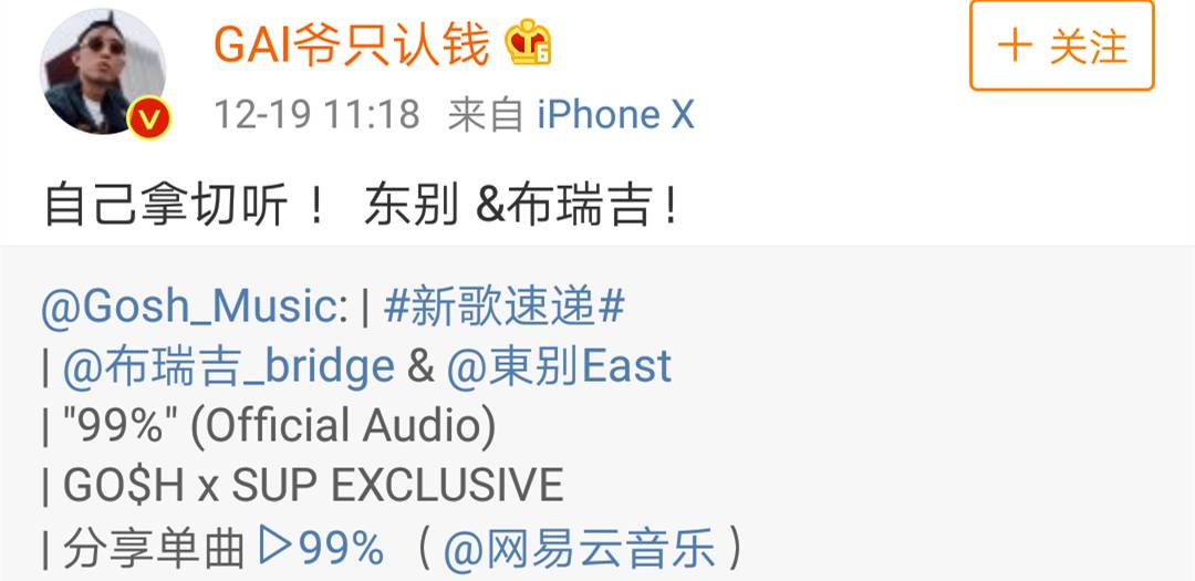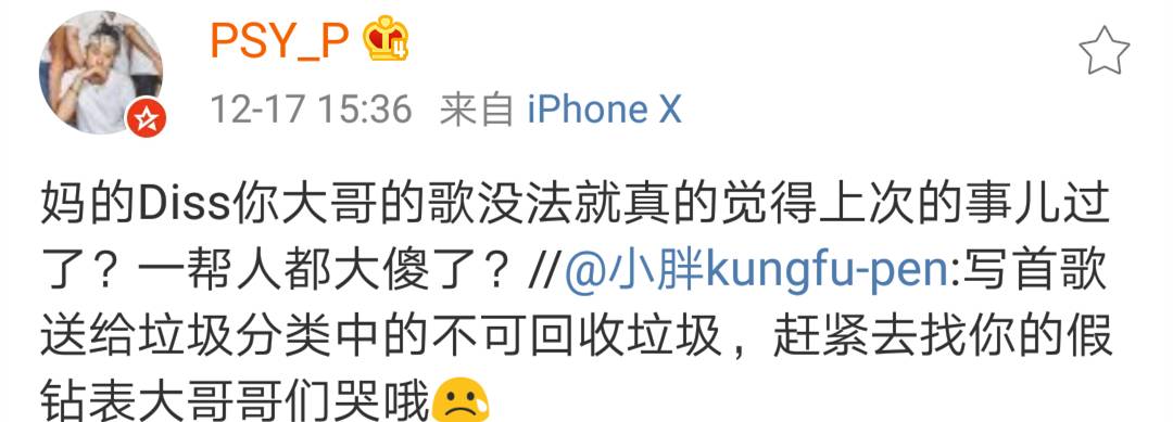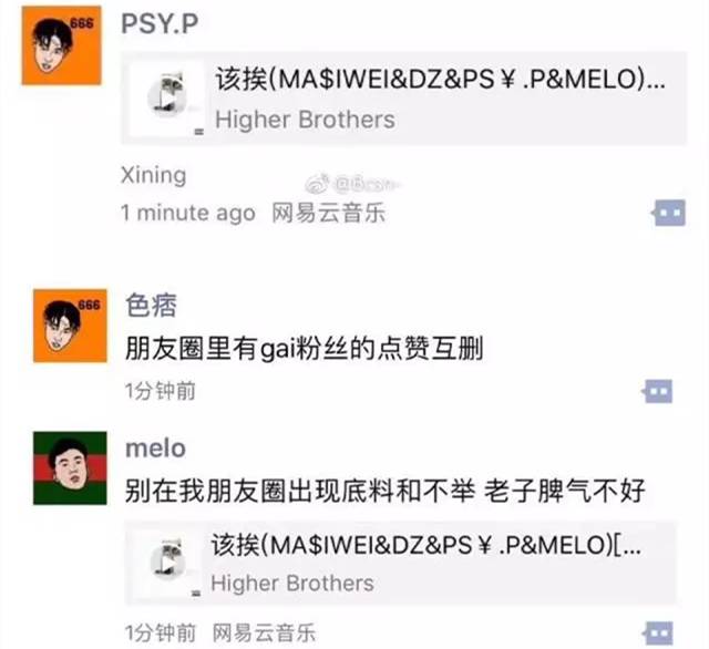 再后来就是《中国有嘻哈》期间那次了,GAI与PG One beef爆发,Psy.P、Melo转发了《该挨》。