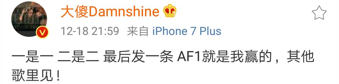 大傻说“歌里见”,但截至12月19日晚上12点,本文发出时,大傻尚未发歌。无论大傻发不发歌,SUP和Higher Brothers的beef已成定局。至此,Higher Brothers又多了一位劲敌——SUP。