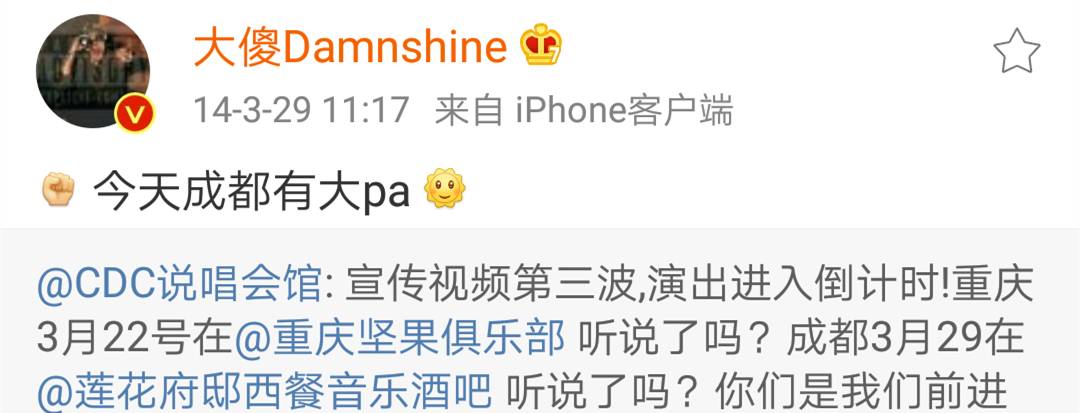2014年大傻为说唱会馆川渝巡演成都站打call。