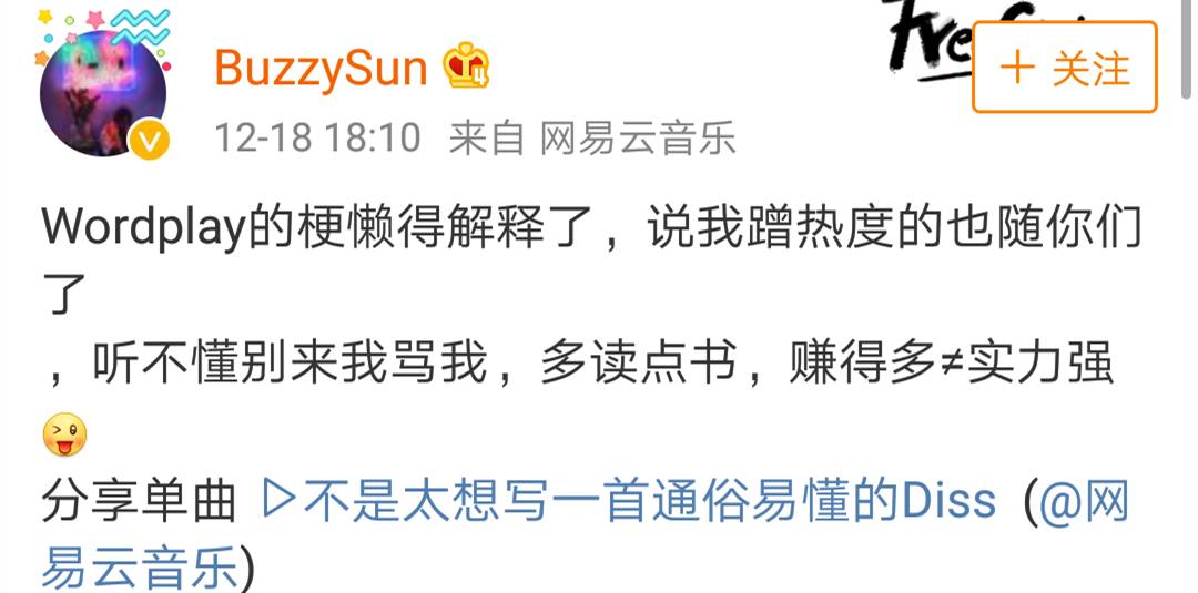 12月18日,Buzzy《不是太想写一首通俗易懂的Diss》发布。