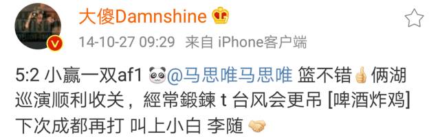 2014年10月25日,马思唯巡演到长沙,和大傻打了一场球。
