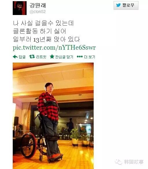 歌手姜元来(因事故下半身瘫痪)在自己的推特里面写到“其实我可以站立行走,但是因为不想参加酷龙组合的活动故意从13年前开始坐着行动”,照片中姜元来站立的姿势靠在轮椅上。众人们表示,这是愚人节最希望是事实的一个玩笑。