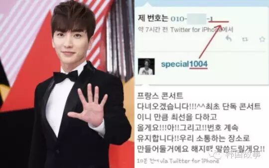 SJ的利特在2012年公开了自己的手机号,愚人节当天利特公开了除去末尾四位的手机号。粉丝们为了与利特通话,开始在网上进行了各种推测,并开始各种拨通电话,牵连了很多其他手机用户,最终利特为了表示歉意,直接公开了自己的手机号,并表示“我将会一直保留这个号码,这是我们交流的空间,如果不用的时候我会通知大家”,小编想说,很是暖心啊~