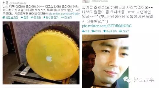 SJ的成员神童在2013年向粉丝们开了一个可爱的玩笑,他在自己的推特上面发了一张照片,照片是一面鼓,鼓上贴着苹果的LOGO,他写着“我买苹果啦!今天晚上我要睡不着了,听说这个音效超棒,要先听听这个音效啦!”。接着他说自己将会公开自己和赵仁成的合影,过了一会上传了一张自己和电视里的赵仁成合影照,逗乐了众多粉丝。