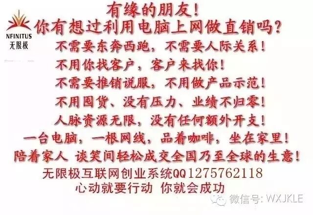 通过我的介绍,想必你对无限极事业已经有所了解了,这么伟大的公司,这么好的事业,我相信聪明的你一定会做出明智的选择,期待与你一起合作,共创美好人生!