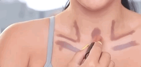 这样就可以横向拉长肩膀的宽度,并且好像有方方的感觉。接下来的情况,大家可以酌情加深。比如修容棒晕染之后效果不明显,可以用修容粉再小范围的精准涂抹一下。