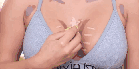 全部晕染开之后,不管穿是深 V 还是低胸,看起来都会更加立体。如果本身就是非常平的小胸妹子,以防效果太假了可以考虑省略阴影着重高光~