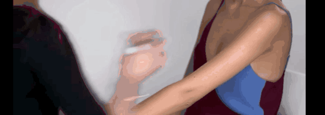 和腿部修容类似的是,胳膊的修容也是一样的原理。先均匀肤色,然后在从肩膀最高点开始往下延伸的一条直线上,涂上身体高光乳液。