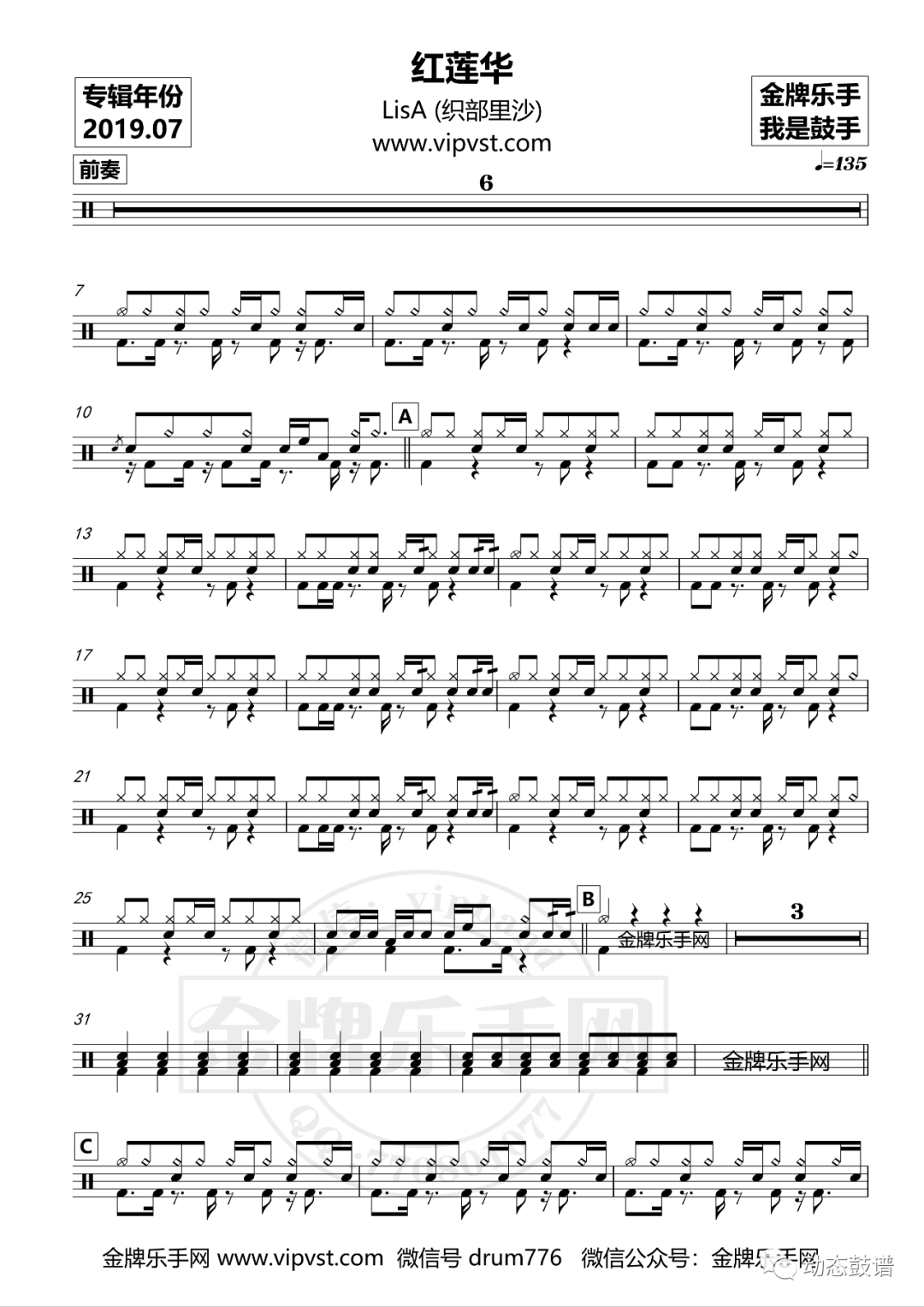 498.LisA (织部里沙) - 红莲华 鼓谱 动态鼓谱